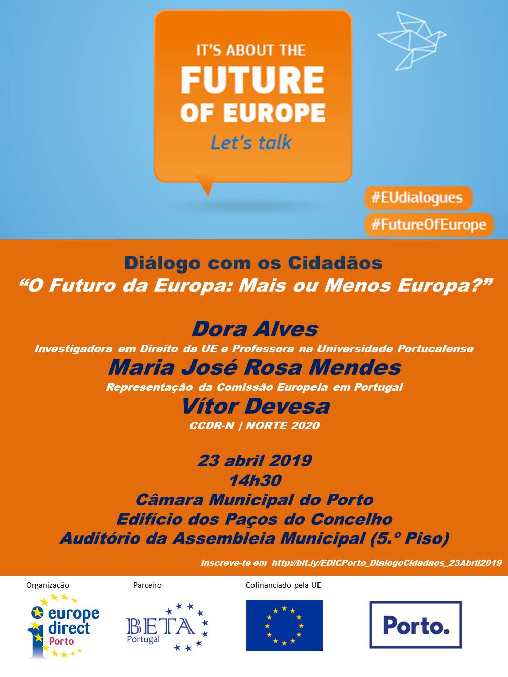 Alves, D. R. (2019). O conhecimento sobre a União Europeia e a discussão possível. In Diálogo com os cidadãos - “O futuro da Europa: Mais ou menos Europa?”, Câmara Municipal, Porto, 23 abr.2019. Disponível no Repositório UPT, http://hdl.handle.net/11328/2668