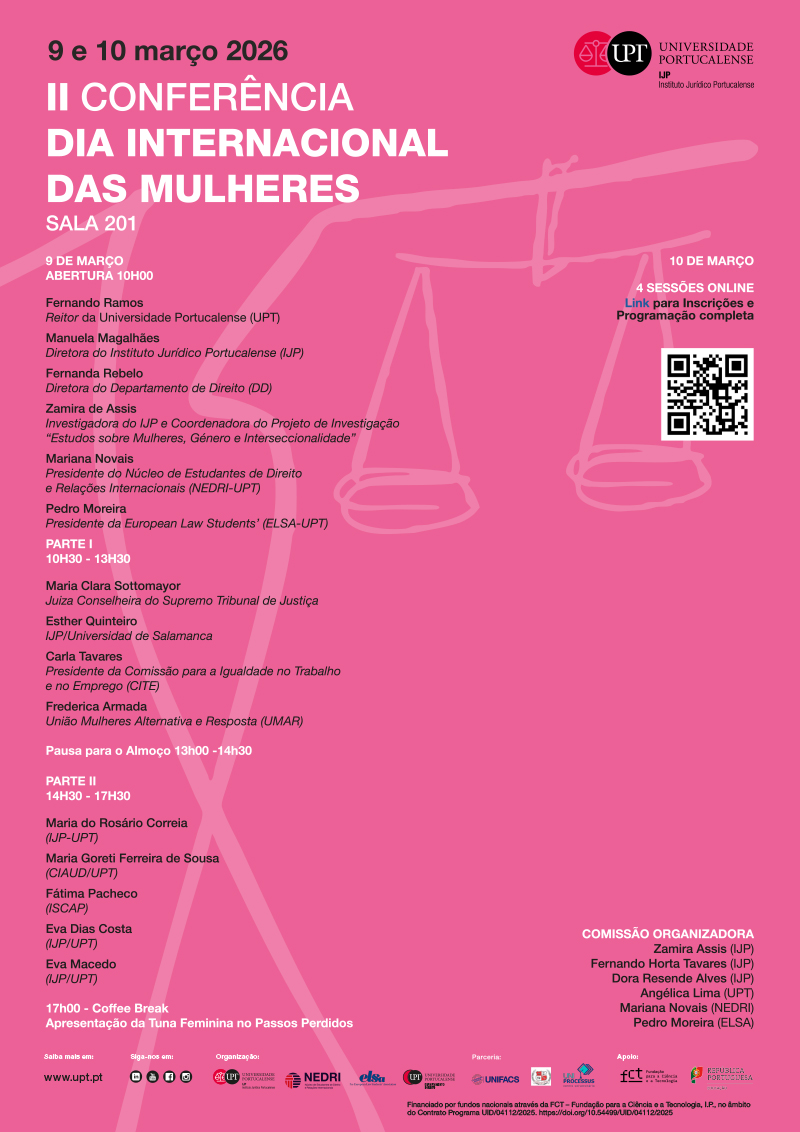 Alves, D. R., & Lima, A. (2026). A igualdade de género na organização da União Europeia: O papel do Instituto Europeu para a Igualdade de Género (EIGE) [comunicação oral]. 2.ª Conferência Dia Internacional das Mulheres da Universidade Portucalense, Porto, Portugal, 9-10 março 2026. Universidade Portucalense. Repositório Institucional UPT. https://hdl.handle.net/11328/7021